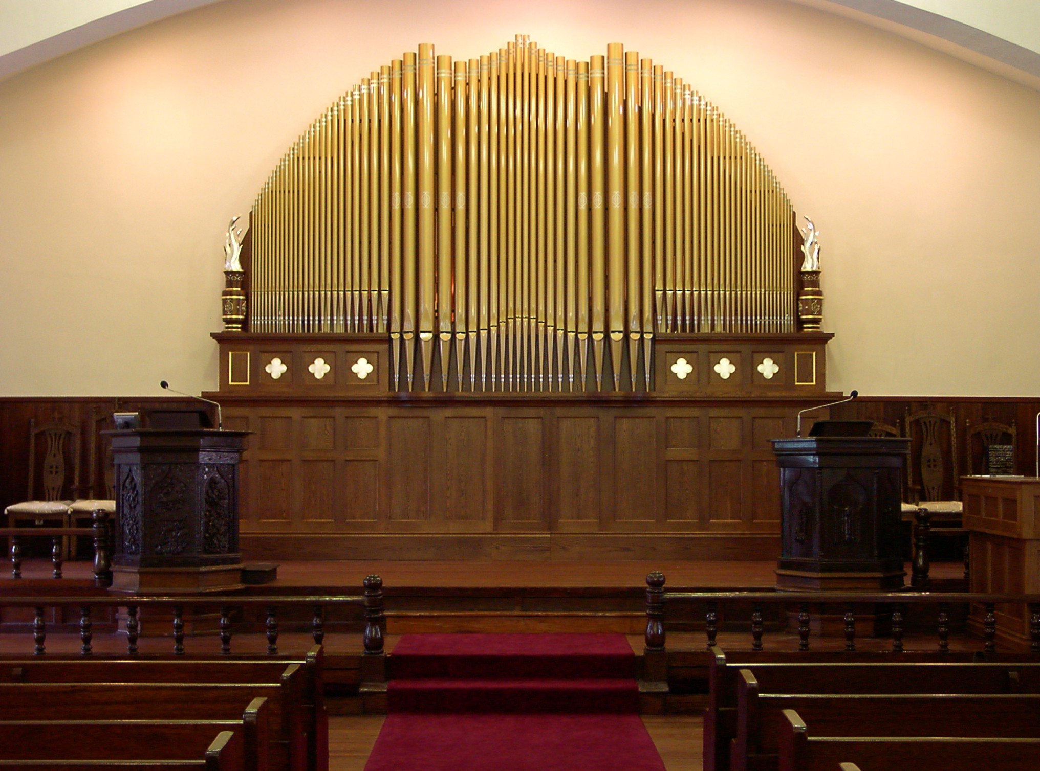 Die Bethel Chapel der First Methodist Church in Seoul ist die älteste christliche Kirche in Korea. Hier wurde 1907 eine amerikanische Orgel eingebaut, die leider im Krieg der 1950er Jahre zerstört wurde. Der Prospekt mit den vergoldeten und verzierten Pfeifen wurde Anhand weniger Fotos und Erzählungen von Zeitzeugen der zerstörten Orgel rekonstruiert. Dahinter entstand eine moderne Orgel mit Schleifladen und elektrischer Traktur mit Setzer sowie einzelnen Transmissionen als erste Vleugels-Orgel in Asien.